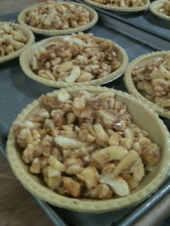 Hanging on the wall in the bakehouse is a thermometer-shaped “Pie-O-Meter,” marking the pastry team’s progress toward these numbers. Late last week the team was more than 80 percent of the way to its target. They get there by going from one daily shift to three, turning the bakery into a round-the-clock operation.